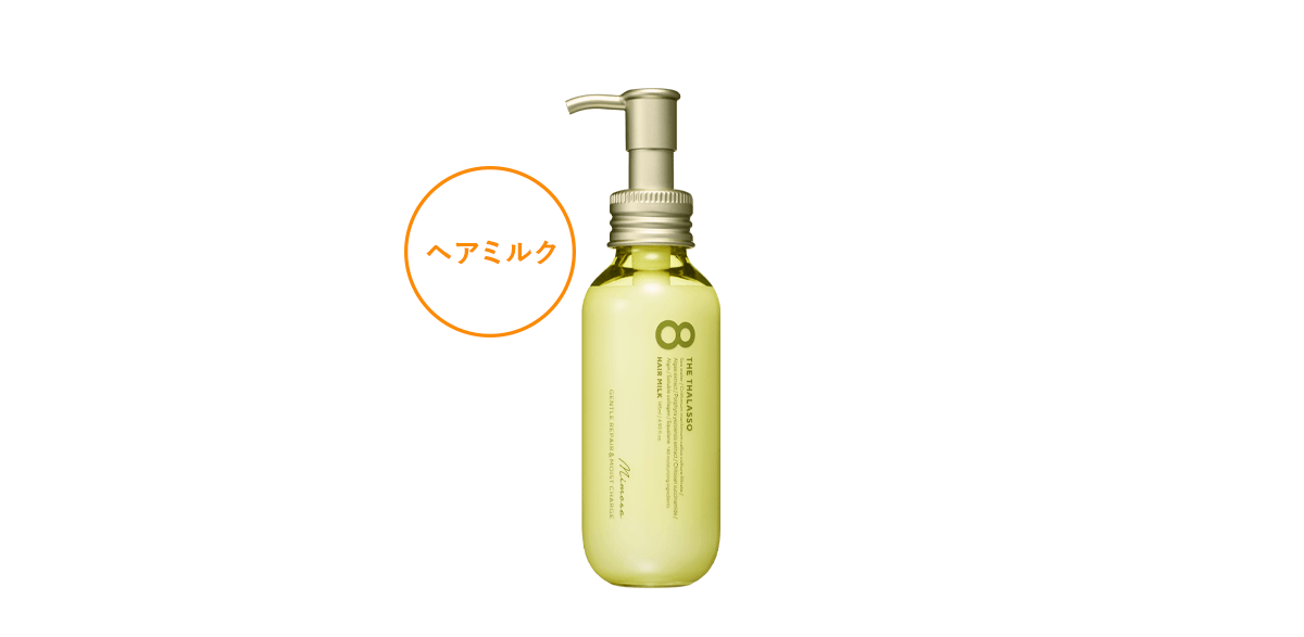 傷んだ髪の内部まで浸透して補修し、毛先までしっとりなめらかな髪へ導く保水型のヘアミルク。シャンプー後、タオルドライしてすぐにヘアミルクをプラスオンすることで、いつもよりしっとりまとまりのある美髪へと導きます。ブロー前の保水、寝る前のうねりケア、アイロン前のダメージ補修にも。