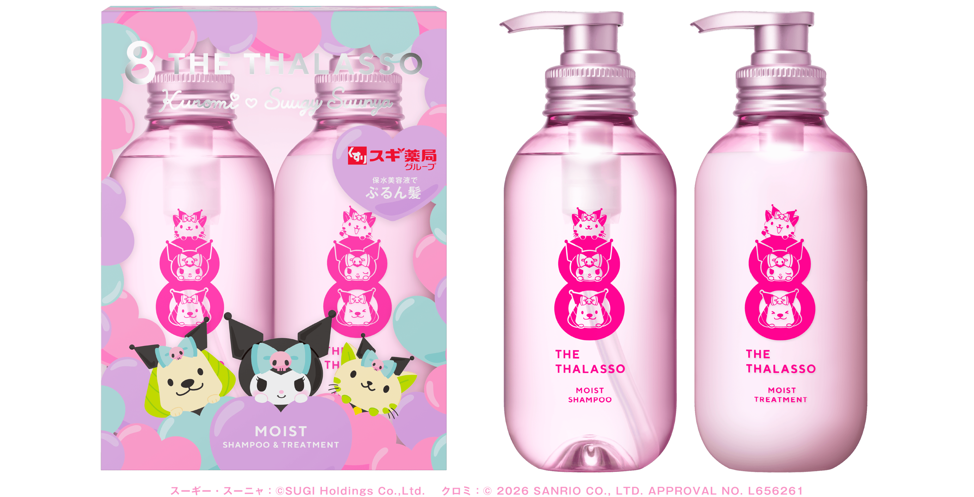 ステラシード株式会社は、スキンケア発想の保水美容液ヘアケアブランド「8 THE THALASSO(以下、エイトザタラソ)」より、スギ薬局グループ公式キャラクター「スーギー&スーニャ」と株式会社サンリオのキャラクター「クロミ」との