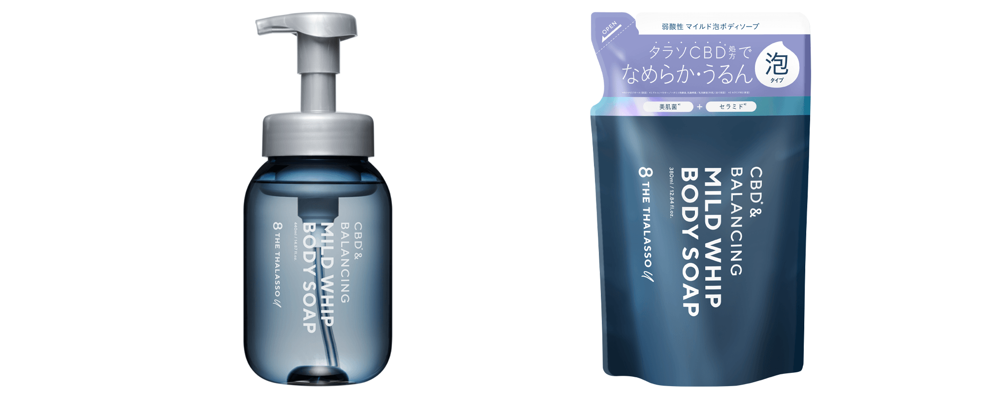 タラソCBD処方で乾燥ストレスから解放!使うたびぷるんと潤う濃密泡ボディソープと浸透保水ボディミルクが「エイトザタラソ ユー」から新登場。