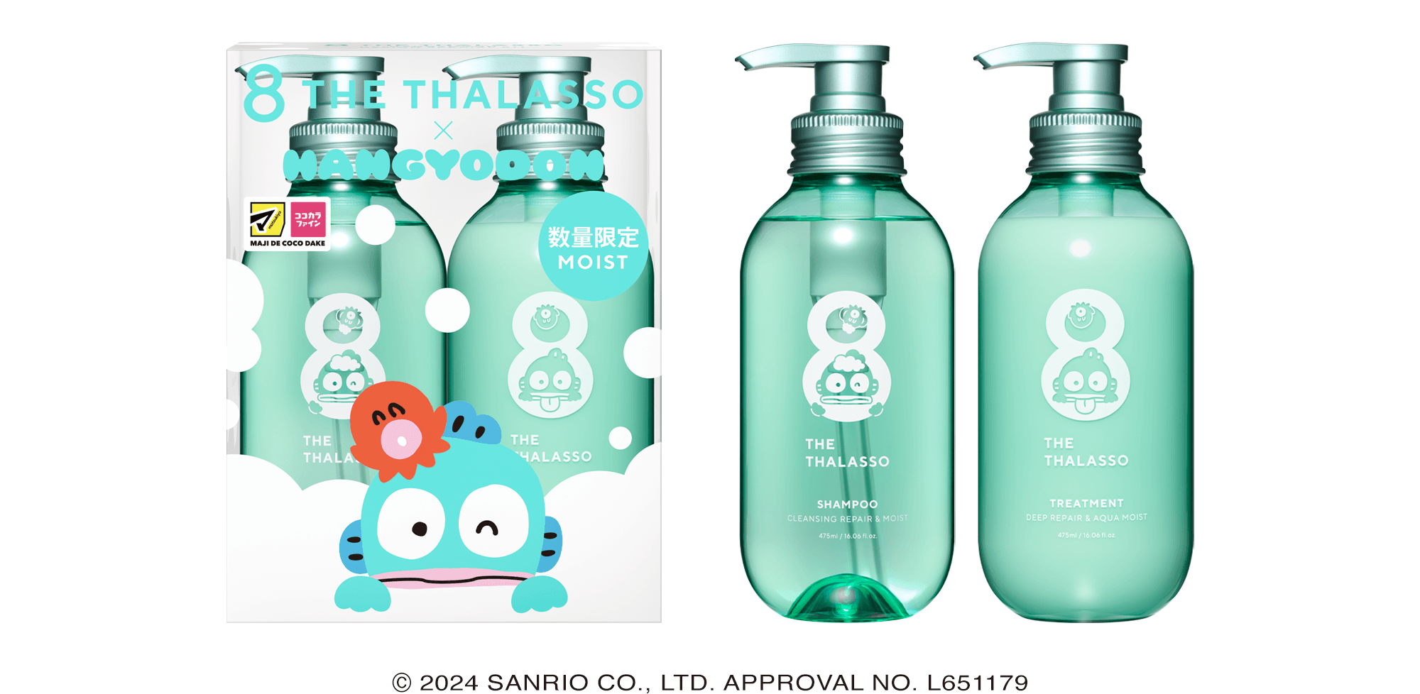スキンケア発想の保水美容液ヘアケアブランド「8 THE THALASSO(以下、エイトザタラソ)」より、株式会社サンリオのキャラクター 「ハンギョドン」デザインのアイテムを全国のマツモトキヨシグループ・ココカラファイングループにて、数量限定で発売いたします。