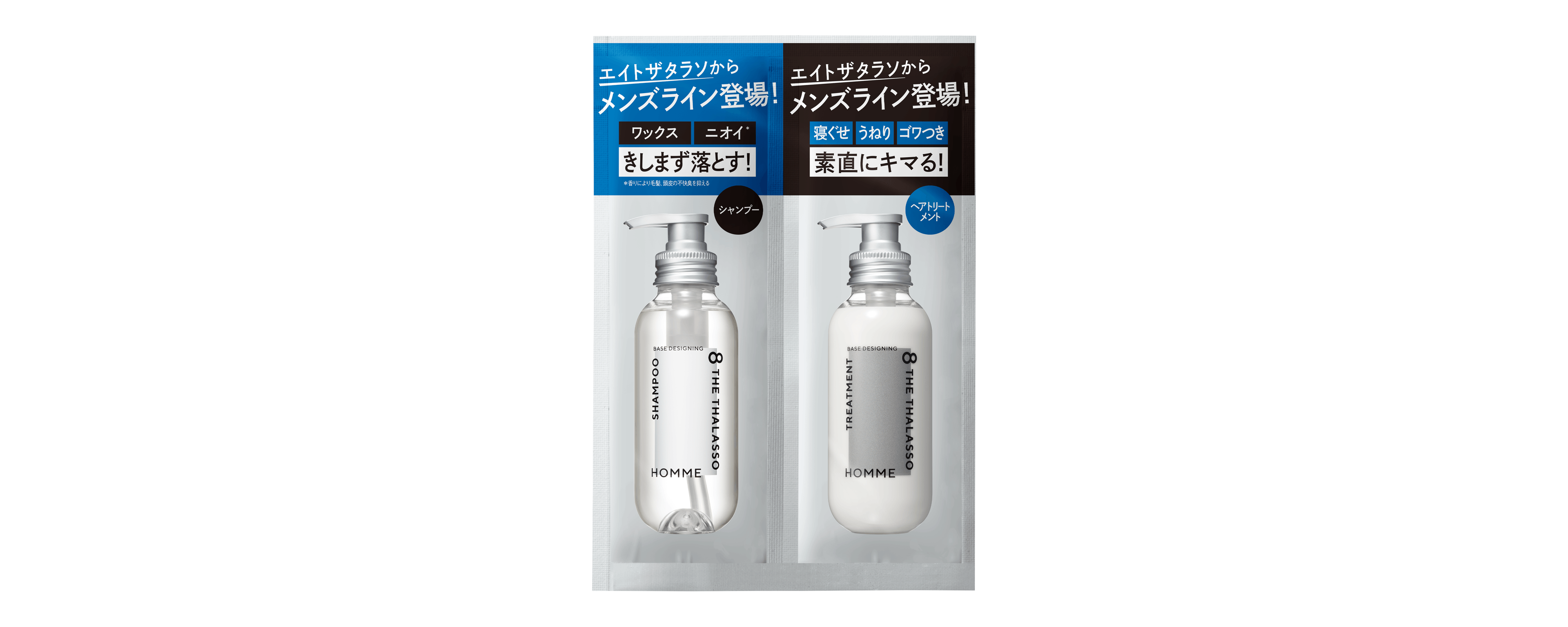 エイトザタラソから待望のメンズライン『エイトザタラソ オム』が登場!シャンプーを変えれば仕上がり変わる!寝ぐせ・うねりを抑えスタイリングのしやすい“自在髪”に。