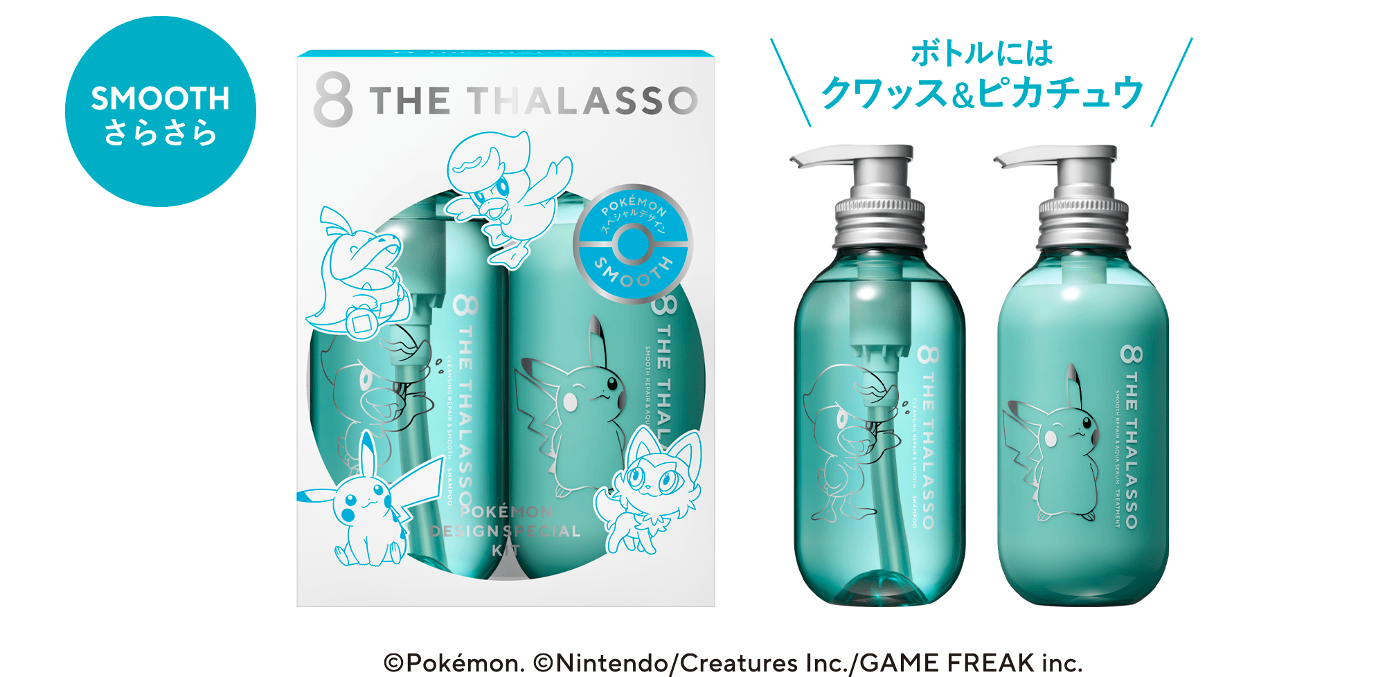 スキンケア発想の美容液ヘアケアブランド「8 THE THALASSO(以下、エイトザタラソ)」から、「ポケモン」のスペシャルデザインシリーズを数量限定で発売いたします。