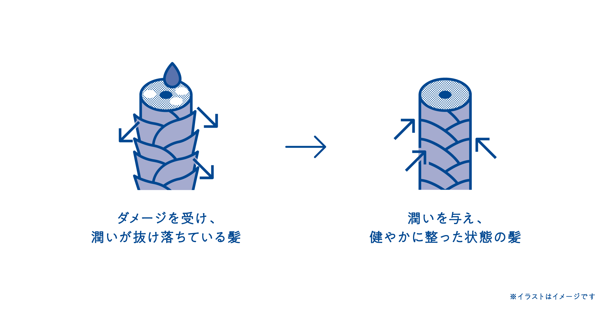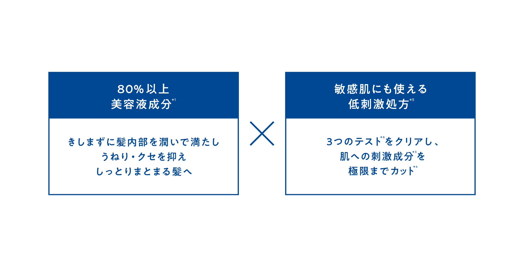 シャンプーは80%以上、トリートメントは93%以上の美容液成分*¹配合。髪の芯まで潤いを与え、毛髪内部の水分バランスを整えることで、うねりやクセを抑え、なめらかにまとまる髪へ導きます。